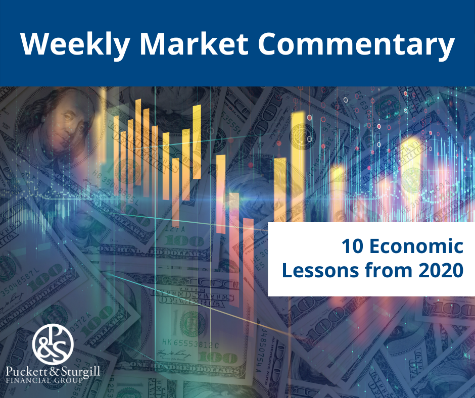 Stimulus matters. A historic recession required a historic policy response. Many speculated that the Federal Reserve (Fed) was out of ammunition, but policymakers proved doubters wrong. The Fed effectively lowered interest rates to zero, expanded its balance sheet by record amounts (15% of US GDP), and even ventured into purchasing corporate bonds—both investment grade and high yield—to restore function to markets and support corporate borrowing. Meanwhile, Congress passed record amounts of fiscal stimulus (totaling roughly 10% of US GDP in 2020), including small business lending and direct payments to households, to help lift the economy as it emerged from lockdowns. The path of returns typically isn’t a straight line. Ideally, the low-volatility/high-return environment of 2017 would have been the norm at this point of an economic cycle, but unfortunately it wasn’t. 2020 brought us the fastest bear market in history (down 20% from the highs), with the S&P 500 Index reaching that level in just 16 trading days on its way to a peak drawdown of roughly 34%. Supported by historic stimulus measures, stocks rebounded off the lows to climb back to new all-time highs in only 106 trading days. 2020 also was the only year when stocks experienced a 30% drawdown and managed to finish the year in positive territory. Markets can experience extraordinary short-term disruptions. At the height of the March volatility, we saw multiple Sundays when S&P 500 futures traded limit-down—when circuit-breaker mechanisms kicked in to prevent further losses. Then during regular trading sessions, stocks experienced trading halts triggered by large intraday losses. While the orderly operation of stock markets had returned by April, oil futures were not out of the woods. Global lockdowns caused energy demand to plummet and maxed out the capacity of supply tankers, sending the price of the April WTI crude oil contract into negative territory—implying someone literally would pay you to take delivery of their oil. Stock markets are forward looking. In late March, we upgraded our recommendation on equities to overweight. Though we admitted the timing of the recovery from the bear market was uncertain, we believed at that time that stocks would soon begin to price in the end of the pandemic, bolstered by the massive stimulus response. With the economy at a standstill, 2020 earnings forecasts plunged more than 25% (source: FactSet). Consensus earnings per share (EPS) estimates for the S&P 500 bottomed in late June, after the index had already rebounded 35% from the March 23 low. Stocks were well ahead of the economy and analysts’ earnings forecasts. Lower for longer. In 2020 the 10-year US Treasury yield plummeted to its lowest in history. We expect the 10-year Treasury yield will rise to a target range of 1.25–1.75% by year-end 2021 as the economy expands and inflation normalizes, but lower interest rates may be here to stay. The economic turmoil has prompted the Fed to lower interest rates and convey the intention to keep them low for an extended period of time. Few on Wall Street expect the Fed to raise interest rates before 2023, and only one member of the Fed expects a rate hike before then, according to the most recent dot-plot survey of Fed members’ policy rate projections. Stocks like election clarity. We have stressed the importance of not trying to time investment decisions based on political preferences, as we believe that stocks mainly want clarity from elections. Stocks put together another strong rally when more clarity arrived after the 2020 presidential election. They also benefited from the anticipation of a Congress likely split between Democrats and Republicans, an environment where stocks historically have delivered their strongest returns since 1950. The wonders of modern medicine. The Food and Drug Administration so far has granted emergency use authorization to two COVID-19 vaccines, and the first doses have been administered. While there is considerable uncertainty about the mass production and distribution of the vaccines, it is a remarkable feat of modern scientific medicine nonetheless. As the vaccine is distributed, we expect the hard-hit areas of the economy—particularly service industries—will begin to improve as life slowly begins to normalize. The power of human perseverance. Many sacrifices have been made in 2020, from holding off on visiting loved ones to helping children with virtual education, and the fight against COVID-19 is not quite over despite the discovery of new vaccines. Humanity has an incredible ability to find solutions to its problems, and 2020 showed our ability to persevere as a society.