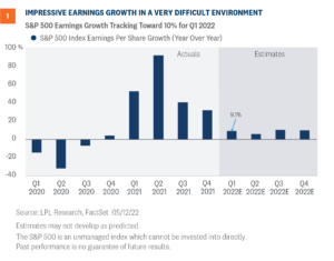 This is an impressive result given the challenges currently facing companies—intense cost pressures, COVID-19, and Russia’s Ukraine invasion with resulting sanctions. The revenue growth corporate America was able to generate—over 13% year over year—was perhaps even more impressive. An upside surprise of about 2.7 percentage points doesn’t sound like a lot, but for revenue it is. Revenue is easier to predict, and companies can’t cost cut their way to more sales. The five-year average is 1.7 points of revenue upside, and the pre-pandemic average was 0.8. Here are some more numbers to put these impressive results in perspective: