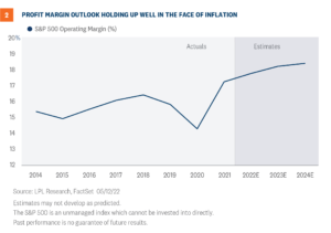 However, these margin forecasts will be tough to reach in the coming year if high inflation lingers. Although signs of a peak in inflation have emerged, the pace of improvement may be stubbornly slow. It’s difficult to envision the labor market getting significantly better in a short period of time, but labor market participation is key to alleviating wage pressures and wages are the biggest component of companies’ cost structures. And company guidance suggests supply chain disruptions may linger well into the fall, longer than we previously anticipated.