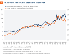 To be clear, we do believe that fundamentals still matter, but it would be naïve to suggest that the Federal Reserve (Fed) and the potential path of its rate hikes have not been the primary focus of short-term market moves this year, and so far, that shows little signs of changing. Any shift towards a more dovish Fed, whether it be from economic weakness or lowered inflation expectations, is almost certain to be a positive for bonds, which have fallen dramatically amid the latest surge in inflation and skyrocketing interest rates, but may also be a positive for equities which seemed potentially already priced for a recession.