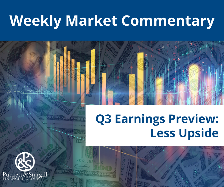 Bottom line—expect upside as earnings continue to benefit from the reopening and high profit margins. But don’t expect the massive upside surprises of recent quarters. A third-quarter earnings growth rate in the mid-to-high 30s would be excellent.