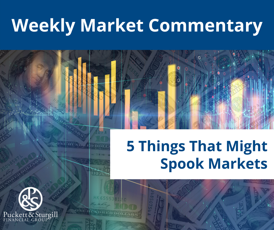 With Halloween over the weekend, what better to write about this week than what scares us? If our positive near-term market outlook proves to be overly optimistic, we believe one—or perhaps more than one—of these five things will likely be the culprit: inflation, an aggressive Federal Reserve, profit margin pressures, pulling forward of seasonal gains, and potentially overly bullish sentiment.